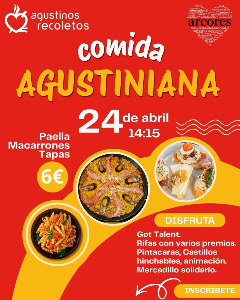 Celebraremos la Comida Agustiniana el próximo día 24 de Abril a las 14:15h. donde disfrutaremos de Paella, Macarrones, Tapas y disfrutaremos en familia de diferentes actividades,